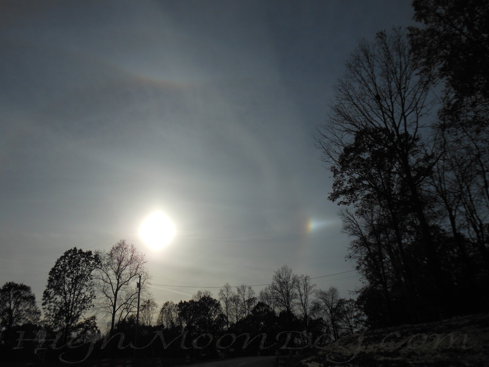 Growing up, my momma would point out sundogs to me if they happened along. She said it meant a change in weather. You've probably seen sundogs, maybe you didn't call them that or maybe you didn't know they had a name. I thought momma just made it up until I happened to see a story on Discovery channel about sundogs. There is a scientific reason for the halo and sundogs and it was explained. Basically the information boiled down to a change in weather. Go ahead, Google it. Momma knew what she was talking about. The ones I saw today were unusually bright. They made almost a rainbow circle around the sun. In fact there was a mirror image rainbow above one of the rainbows at the apex of the halo. They were beautiful making rainbow darts in the fall sky. And, I don't remember ever taking a photo of the sun. Today was a first!